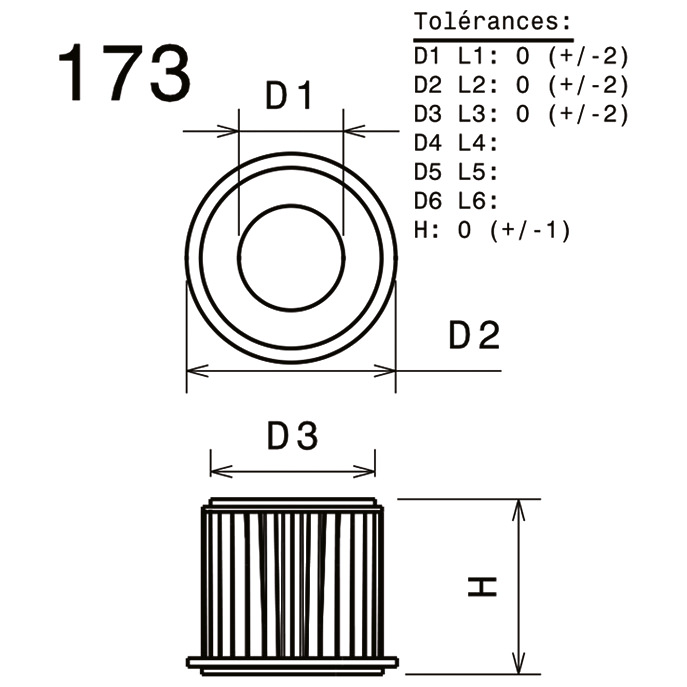 - Filtre Rond : 69mm (D1) x 138mm (D2) x 157mm (D3) x 207mm (H)